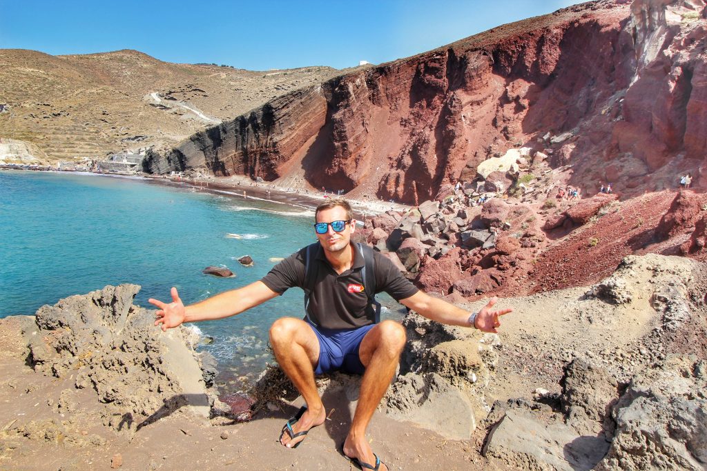 - Red Beach – Red Beach near Akrotiri, is stunning but requires a short hike over rough terrain and going onto the beach is dangerous due to landslides from the hill above. If going here, go just for the photo like I have above, but don’t go onto the beach (3 tourists died a few years back, hence the signs saying beach closed).