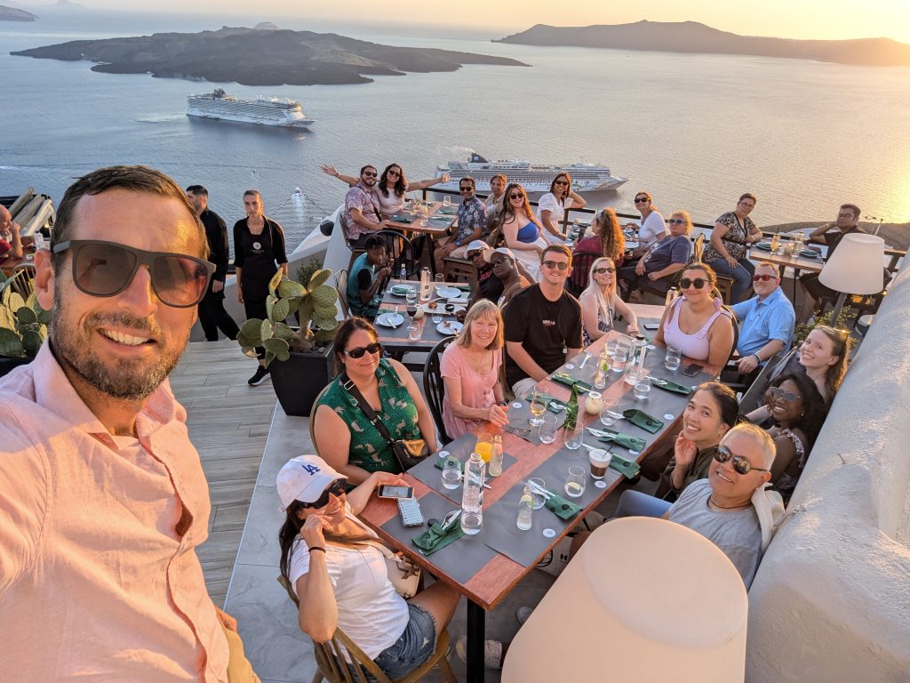 I remember my first visit to Santorini like it was yesterday. Arriving in Fira town and seeing the unspoiled view of the Caldera, I simply had to stop and say “wow!” 10 years later, whenever I arrive with a group and show them that same view, I still say “wow!” and I get to enjoy their reactions. For some of them a lifelong dream.