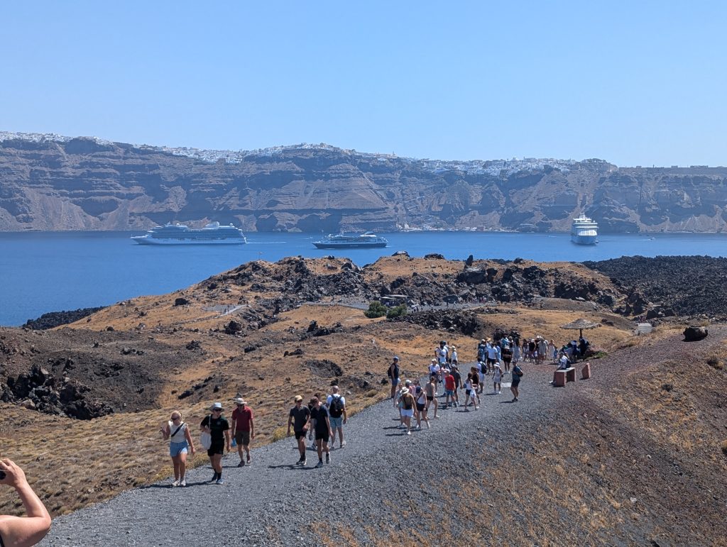 Cruise Ship Arrivals – Santorini is a major cruise destination, with ships anchoring in the caldera and tendering passengers to the old port. If you’re arriving by cruise ship, expect crowds and plan accordingly. Whilst I would normally not recommend the over-inflated tours organised by the cruise liner, Santorini is a different story, as the cable car from the old port to Fira can have long waits when multiple ships are in port.