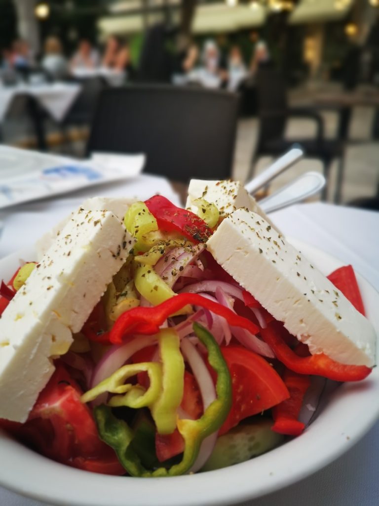 - Greek Salad (Village Salad): There’s no “Greek Salad” in Greece—it’s called Village Salad. It varies slightly throughout the country as communities add locally available ingredients, but core staples include tomato, cucumber, feta, olives, and lots of olive oil.